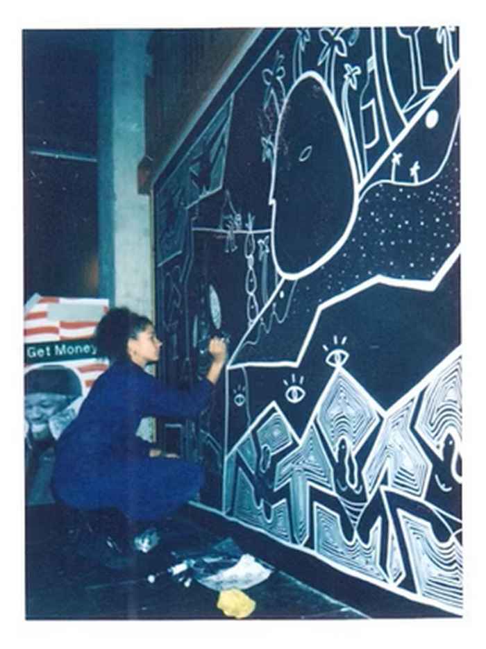 Gabi Brunhoso (she/her) is a 30-year-old illustrator, visual artist from Amsterdam, the Netherlands. Anything could serve as a canvas for her illustrations, from vibrant murals to customized objects. Recognizable by bold lines, funky figures shaking their butts, tropical vibes, and overall fun aesthetics. She made a window drawing as part of the exhibition, with the theme “ownership in the city.